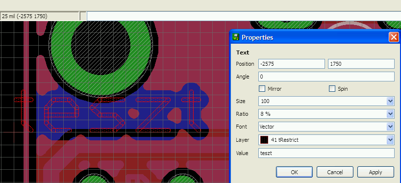 Próbáltam úgy is, a honlapodon olvastam róla leírást. A gond csak az vele, hogyha a polygont beállítom pl 24-esre, akkor a szövegnél is 24-es lesz. Tehát 24 mil távolban nem lesz telifólia. Próbáltam ezt módosítani, h csak arra ne vonatkozzon, de sajnos nem sikerült. Ha le is vettem nullára, akkor se ölelte körül szépen.