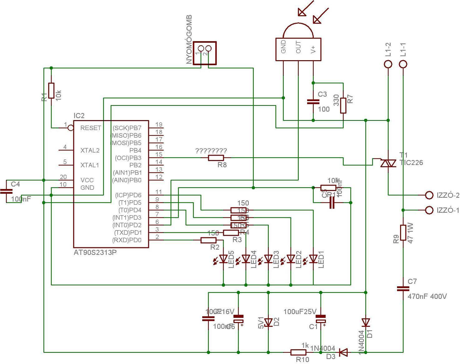 Ahogy olvasgatom az adatlapot az lenne a kérdésem, hogy jól veszem ki, hogy a TIC226-ot 0.7V 6mA-el kell vezérelni? Vagy hogy is van ez? A kapcsolásban egy tiny2313 vezérel. Mellékeltem a kapcsolást.