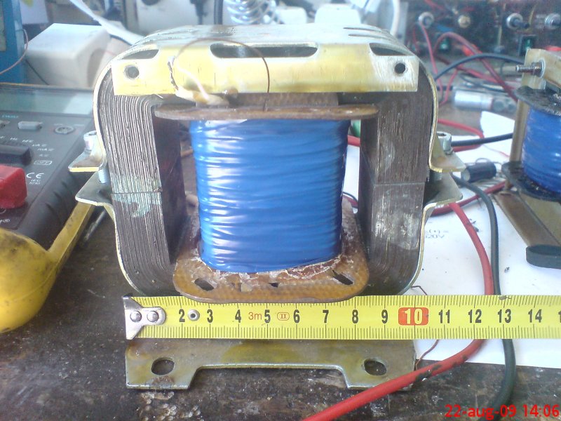 Az a legnagyobb gondom, hogy ennek már megvan a primerje, ami elvileg 380V-os volt. Ezért át akartam tekerni 230V-ra, de ehhez tudnom kellett a menetenkénti feszt. Ezért, mivel nálunk nincs 3 fázis, így egy 220/380-as trafóra kötöttem rá. Így nem is zúgott semmit. Utána letekertem 230V-ra, de itt már zúg. Próbáltam, hogy feltekerek rá még 50 menetet, de változatlanul még mindig zúg, de a menetenkénti feszültség már 1 tized voltot esett. Sokat nem akarok már rá tekerni, mert akkor már sok menet kellene a többihez is. Pont azért akartam ezt a hiperszilt táptrafónak, mert egyrész nagyobb ablakmérettel rendelkezik és jobban gerjeszthető, mint egy normál EI trafó.