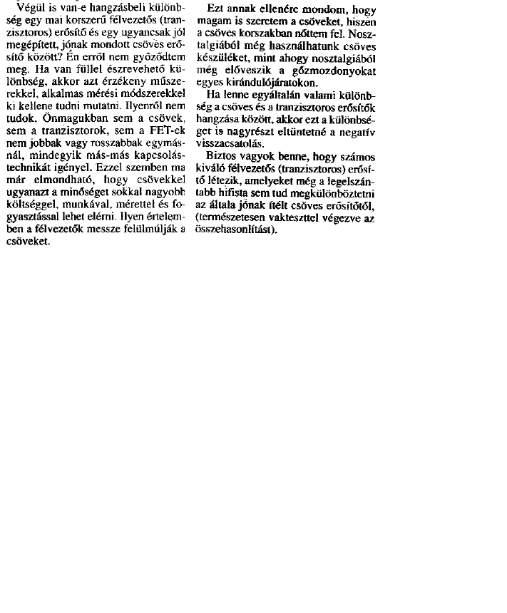 Heh, én ezt most nem értem, a szakirodalom azt mondja , nincs különbség egy csöves és félvezetős között, ha lenne is azt az NVCS eltünteti, hát nem tudom, szerintem meg van. De ez csak az én véleményem. Lehet beleviszem a túlzott szubjektivitást, amikor hallgatom, és az elfogultságom is közre játszhat, de én akkor is azt mondom a csövesnek kellemesebb hangja van és igenis van különbség. Persze ezt nem is igazán neked írom, hanem a cikkben leírtakhoz szól.
