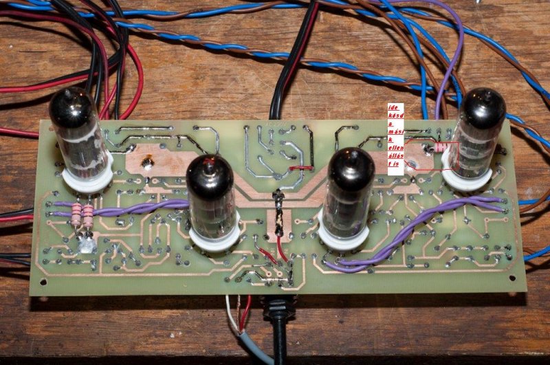 Mostani PP-ben is az előfok csöveinek fűtését használom - DC előallításához az áramgenerátor részére . Esetleg feszkétszerző egyenirányítás is megpróbálható , ha kevés lenne . Idézet: Több mint valószinű azzal lessz a gondod , ami azt illeti én ezt az erősítőt úgynevezett deszkában kisem próbáltam ! Egyből élesben izzítottam , amikor már a dobozba szerelés megtörtént . Elmondhatom nyugott szívvel hogy ennél az erősítőnél az alapzaj az szinte a 0 - val eggyenlő . Még azzal a rosszul felhelyezett fűtés közepelő ellenálással sem volt semmi brumm a jobb oldalon ! De viszont időben felfedezte a Zoli hogy ez az ellenálás rosszul lett a panelre tervezve , és ezután én is helyes irányba fordítottam ! Első indítás ! „Igazad lehet, hogy a kábeli zűrzavarban szed össze valami zajt”