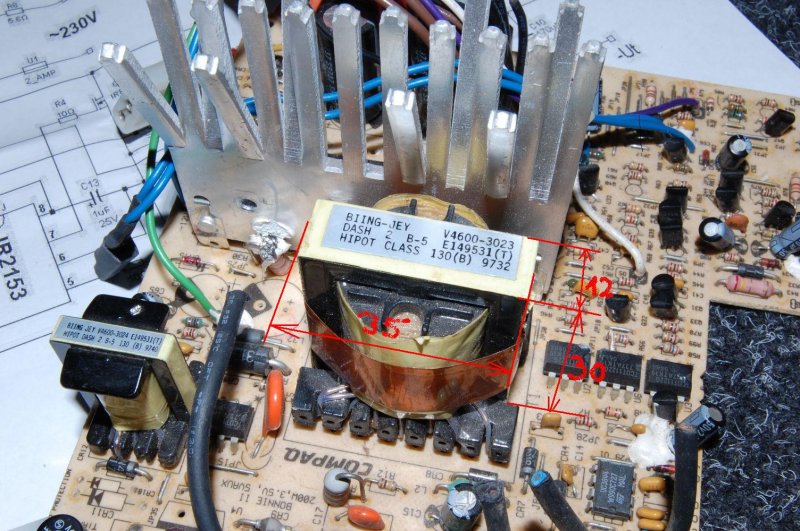Én is ahhoz csinálom a sajátom, de szerintem az a kerek mag nem ilyen frekire való, inkább valami zavarszűrőben lehetett szerintem, azzal a pc táp trafóval jobban járnál.