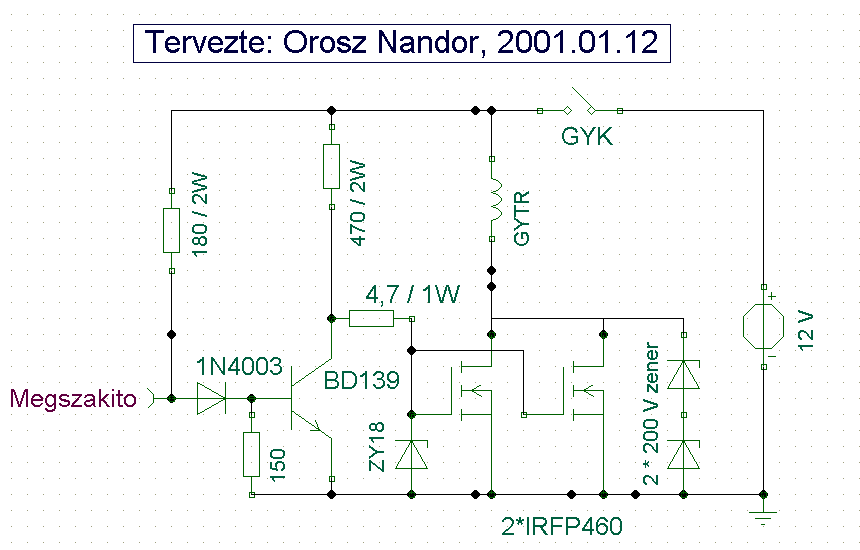 - A 2db 200V-os soros zéner, a Gate-re van kötve, pedig annak a Drain-re kellene menni.