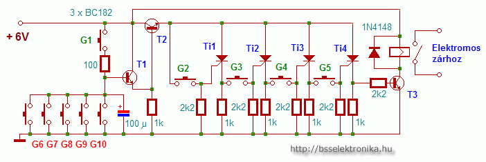 A tirisztoros kódzár szerintem is jó ötlet. Csatolok is egy rajzot.