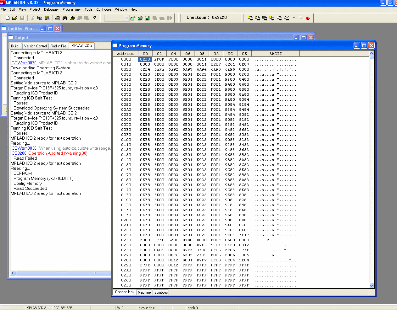 Ki is próbáltam egy 18F4525-el, mert az előbb akadt a kezembe. Lepődtem is mert az szűz PIC programmemóriája nem üres. Nem ismerem még ezt a PIC-et. Valamihez rendeltem 3 éve , de megmaradt.