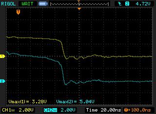 Oksi, értem amit mondasz. Megnéztem és az SPI-s portok ST-sek, tényleg csak 4V fölött érzékeli magasnak.