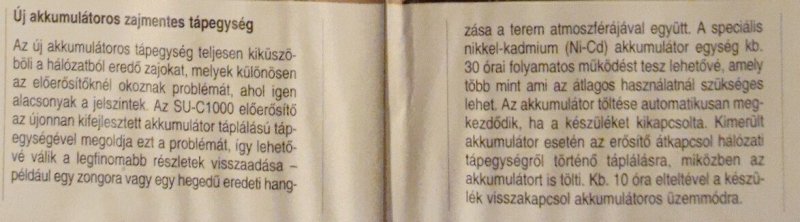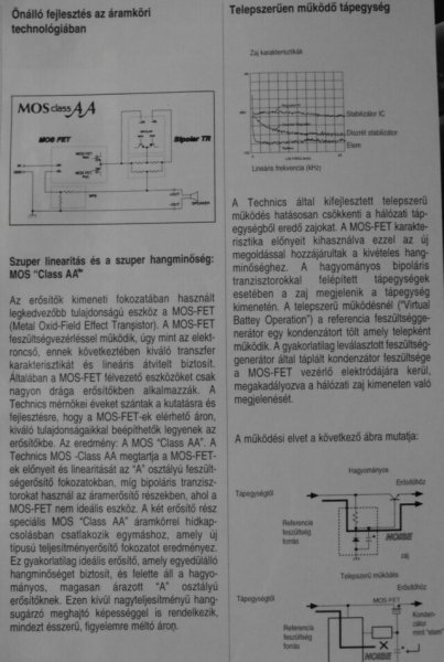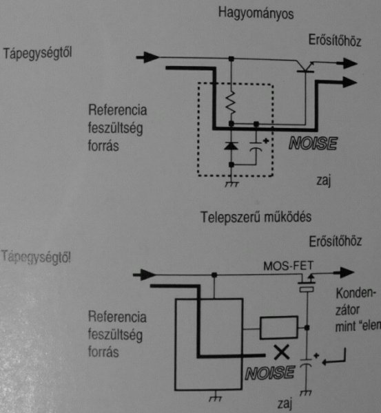Van egy régi (1992) cikkem egy A osztályú Technics erősítőről, melyben mint újítást mutatják be, hogy a tápegységben a szűrésnél nem kondenzátor tárolja a referencia feszültséget hanem akkumulátor, és így próbálják a lehető legkevesebbre csökkenteni a hálózati zavarokat... Megpróbálom beszkennelni... (Egyébként engem meg az zavar, ha besüt a nap a szobámba! Behúzott függönnyel jobban hallom a zenét, na meg ha paprikás krumplit eszem, meg egy sör is kihozza a részleteket. Fontos, hogy ne üljek rá a kis-megszakítóra, mert az rontja a koncentrációt. )
