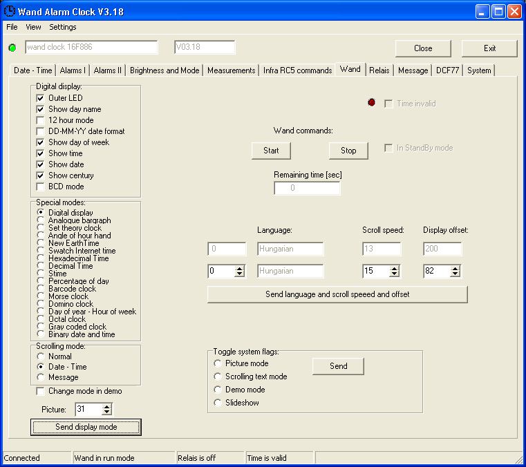 Idézet: „Ha átlépek egy másik, (fölötte lévő), Scrolling text... módra, vagy mindegy melyikre, nekem folyton visszaugrig a demo módra.” A kezelő programra gondolsz vagy az óra programjára?