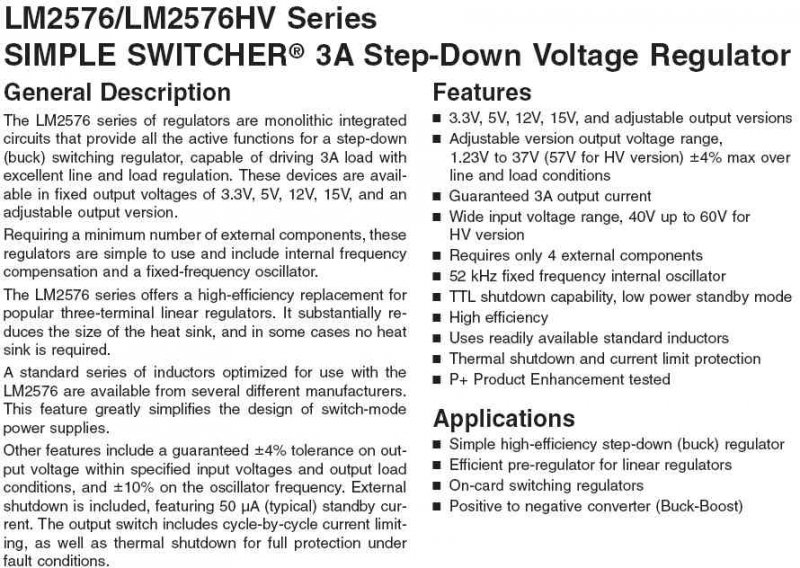 Szevasz! Itt egy Step-Down IC adatlapja.. Adataiban alkalmas a feladatra, jó hatásfokú, olcsó /alkatrészei ca. 2500Ft./