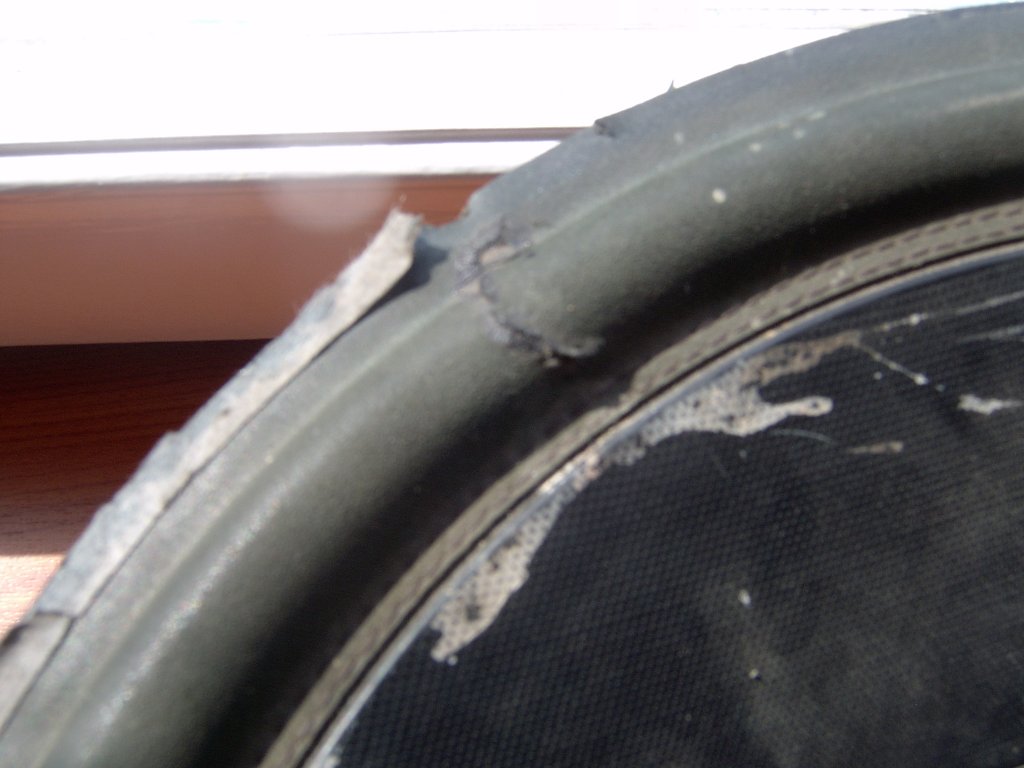 Szétszedtem a hangszórót és nem láttam semmi érdemleges hibát a cséve környékén. Csupán kicsit elszíneződött a tekercs egyik része. Gondolom ez nem gond, de ha már szétszedtem gondoltam felteszem. A második kép pedig a membrán belső szélén levő sziloplaszt ragasztás amint elengedett. Nem tudom ki javította, de ezzel próbálta befoltozni a gumiperemen egy apró kis szakadást. Ez a sziloplaszt lifegett, nagy valószínűséggel ez zizegett a membránhoz csapódva. Holnap összerakom a hangszórót és meglátjuk.