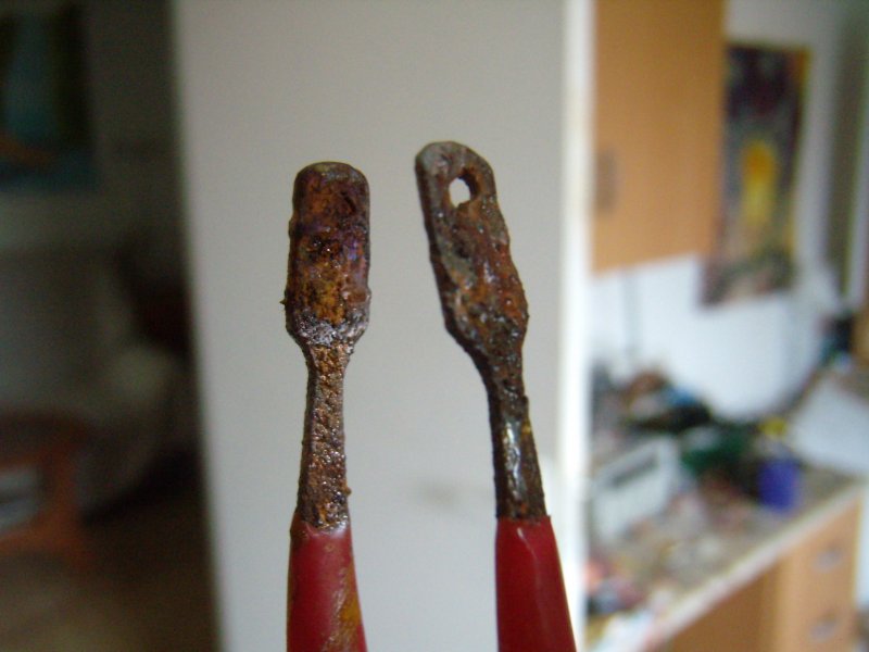 Én több fajta vas-kloridot is kipróbáltam. Több cégtől, több fajtát. Az amit granulátum formájában vettem valóban 2 maratás után telítődött, de van egy fajta, amit 500ml kiszerelésben árulnak, már feloldva, na ez úgy bevált, hogy akár 5-6 maratást is kibír, és ezt használom pár éve. Valahogy úgy képzeltem el a szondákat, hogy csak beledugom az oldatba és nekem visszajelez ha kell, aztán kiveszem és letörlöm a szondát, nem hagyom benne. Csak egy képet mostmár felteszek arról a csipeszemről, amivel a vas-kloridban szoktam matatni, a hatás kedvéjért. Tudom mire képes. Köszi a hasznos infót, kell méréseket végezzek friss oldattal és telítődöttekkel is.