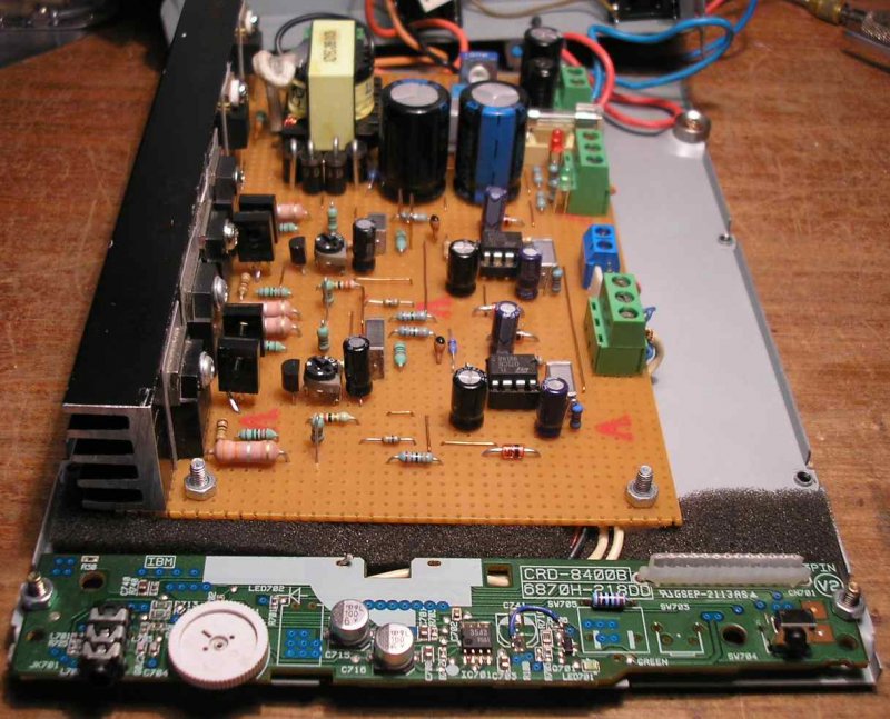 Kb. 3 éve megépítettem ezt a Texas 25W erősítőt, szintén pontrácsos nyákra (sztereóba), egy CD-ROM házba. Gépkocsiba lett beépítve, ezért 12V-ról, 2x30V-os PWM tápegységgel lett egybeépítve. Úgy lett elkészítve, hogy az előlapon szerelt 3.5 Jack aljzatból működjön, meghagyva a kis panelen lévő sztereo potmétert is hangerő szabályozásra az áramkörben Kifogástalanul működött külső, (MP3) lejátszó alkalmazásával. Időközben a kocsi ki lett cserélve, kiszereltem és megmaradt az eszköz a szekrényben pihentetve. Most találtam meg, előszedve és „kipucolva” bekapcsoltam, de az egyik oldal egy darabig csak recseg-ropog, és úgy 4-5 perc múlva kezd rendbejönni, rendesen megszólalni. A másikkal semmi gond nincs. Kicseréltem az IC-t. méregettem a végfok áramkörét, de nem javult a helyzet annak cseréje után sem. (Teljesen egyformák minkét oldalon a mért értékek). Fogalmam nincs mi lehet a baja, mert külső tápról is ezt csinálja. Néhány felvételt készítettem róla, feltöltöm. Sziasztok.