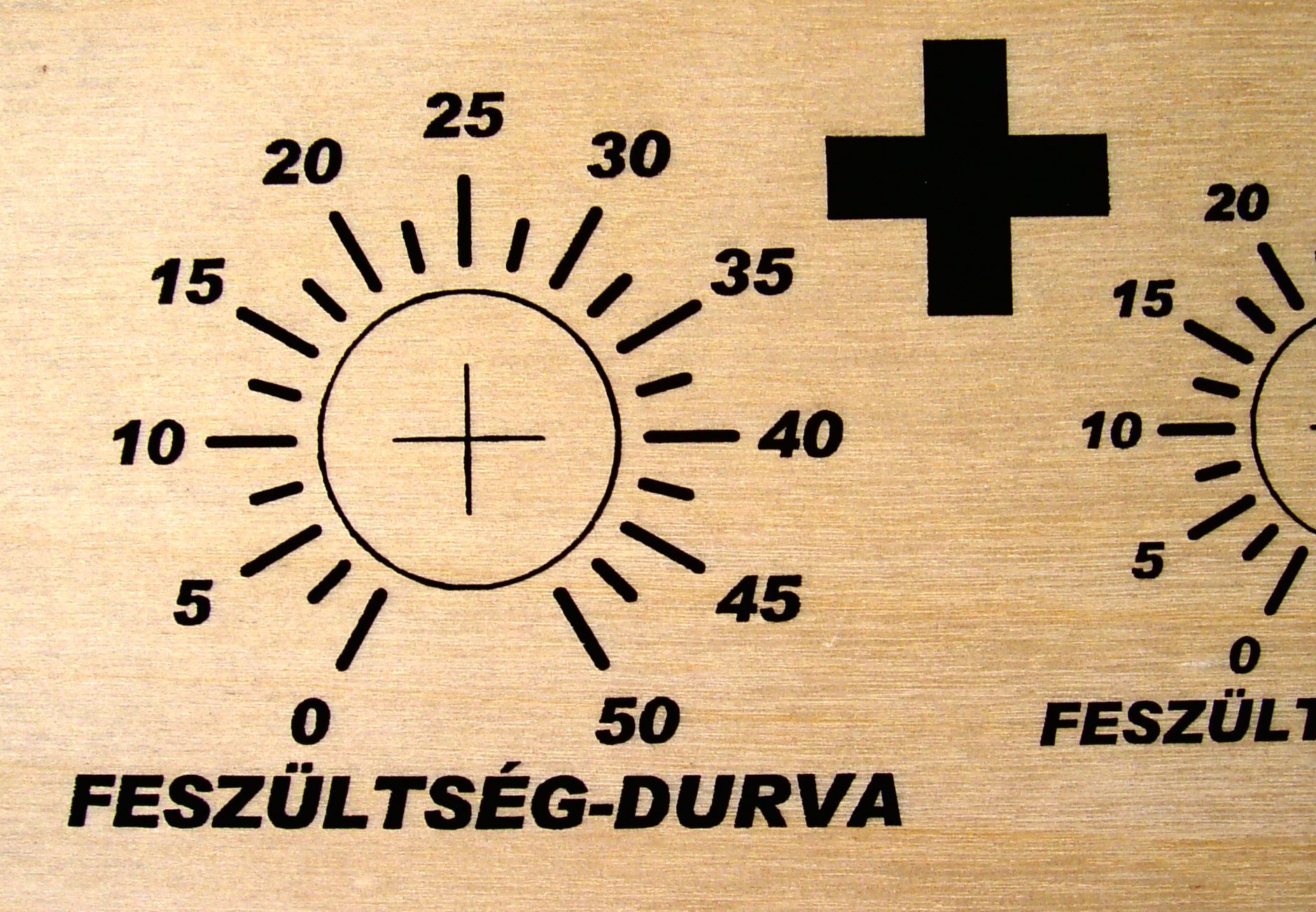 A "+" jelet azért raktam fel, hogy nagyobb, egybefüggő fekete kitöltés is legyen, illetve különböző méretű, 300°-os potméterpályákat is használtam.