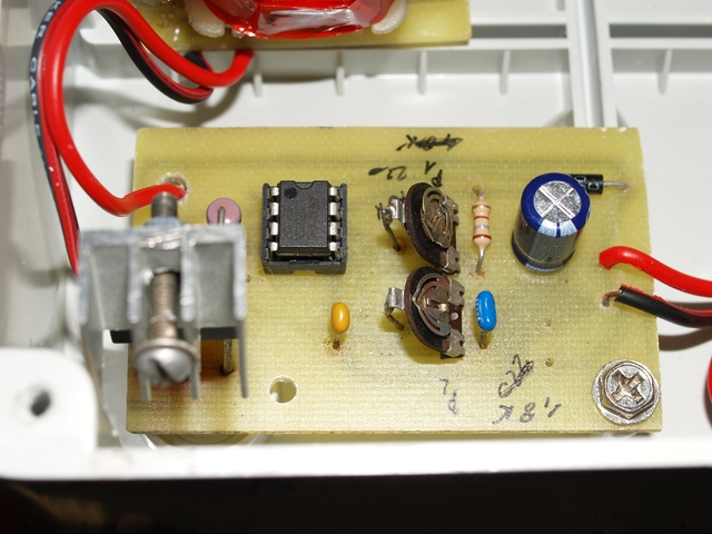 A kutyával az a probléma hogy nagyon jól szigetel a szőre és ezért nagyobb feszültség kell neki(Kb 20 kV).Megnéztem az időzítő IC-s kapcsolást,én tranzisztorokkal és fettel szoktam felépíteni mert nekem ez egyszerűbb .Majd feldobok én is egy rajzot ha megtalálom.