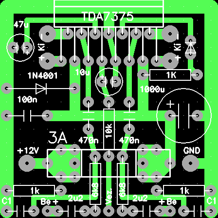 én is megépítettem ezt a végfokot (a 7375-öt). Én egy Pentium III-as processzor hűtőbordáját tettem rá. Nekem 3 ohmos terhelésen éppen csak langyos, és 16v-on hajtom. Viszont volna egy kérdésem: hogy van az, hogy nekem a diag. led egyáltalán nem jelez semmilyen körülmények között sem?