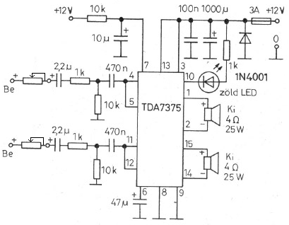 Valószínű, eddig még nem vezérlődött túl. Bezzeg az előfok... (tda1524a).Egyébként a led bekötése helyes, ott biztos minden rendben van.
