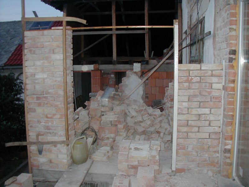 Láttam a hátul lévő részt is. Elég jól haladsz. Ha minden igaz, akkor szombaton be lesz fejezve a falazás, és kezdhessük a menyezettet rakni. (Mi a munkát június végén kezdtük)
