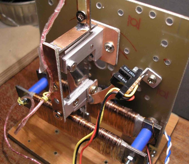 Egy nyákrugó/kar/mágnes/rögzitő elemeiről készitettem felvételeket. A nyákrugó méretei itt is megegyeznek a leírt értékekkel. A kar hossza 145mm, együtt van rögzítve a mágnessel. A lengető mágnes egy régi (WD340) winchesterből lett kitermelve. A nyákrugó helyére acélrugó is szerelhető. A levezető 0.1mm-es CuZ (10ér), sodrata a kicsatlakozóig szintén követhető. Az összeállítás képein jól látható minden részegység. Szia.