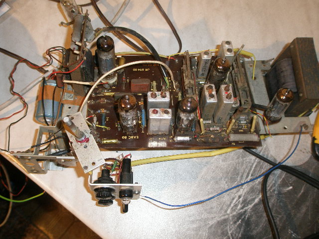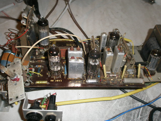 Az EABC80-as dolgozik még a hangfrekis részben. A bal oldalon van az EZ80. Ezek a csövek kellenek. Az ECH, és az EBF nem.