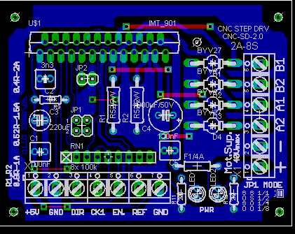 Köszi, bár valami eagle formátumban használhatóbb lenne, de az elrendezésben segíthet ez is. Valami ilyet akarok csinálni, és a meghajtóra is vettem egy hűtőbordát. Bár egyszerűen nem értem, a microsteppet miért nem kötik ki a vezérléshez? Az enyém olyan lesz, hogy egy pic24 ül középen, 6-6-6 kivezetésen megy a motorvezérlőkhöz az infó. (reset,enable,irány,step,mikro1,mikro2), és egy soros vonalon kapja az infót, hogy melyiknek mennyit kell menni. Egyenlőre csak fúrni fog, és ezért nézegettem a drill file-t, illetve írtam egy kis vb progit ami már beszélget a pic-el. A pc kiszámolja, hogy hány full step és hány mikrostep kell, a pic meg bután végehajtja. Szerencsére a drill úgy van összerakva, hogy az egymáshoz közel eső furatok vannak egymás után. Ha van egy két soros tüskecsatid, akkor elindul az egyes lábtól a végéig, ott felmegy egy sort és a megy a végétől az elejéig. Az hogy a mikrosteppeket jumperekkel kell állítani, megfosztja a cnc-t a pontosságtól vagy a sebességtől.