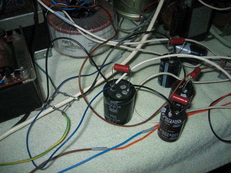 Teszek még egy kondit az EZ80 után... De eddig így szólt, most, hogy deszkába összeraktam nem szól rendesen. Anódfeszt nem is mértem, anódáramot sem, megmérem őket délután.