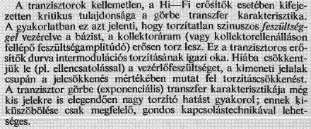 Nem csak a tranzisztoroknak, hanem a csöveknek is görbe a karakterisztikája. Csak a tranzisztoroké exponenciális, a csöveké meg hatvány függvény szerinti. Ezt szokták a tranyók szemére hányni. Ugyanis, -ha nem tűnik túlzott tudományoskodásnak, akkor megemlíteném, hogy- az exponenciális görbe a leg görbébb görbe, mert ott minden deriváltba, hivatalból benne marad a független változó.