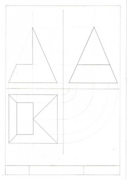 Szerintem így jó a rajz ahogy van, a négyzet jó, a két csonkolt sarok is és a háromszög is. Én legalábbis felülről ezt "látom" de nagyon rég volt már rajzoktatás. De még a mérnököknek számtan milyen rég