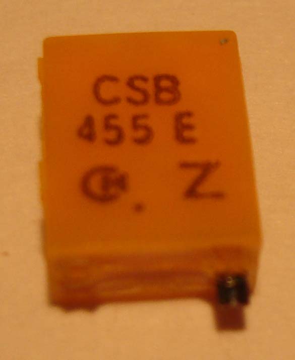 455 kHz-es rezonátor. (A kvarchoz hasonló, csak nem olyan pontos, oszcillátorokban használatos.)
