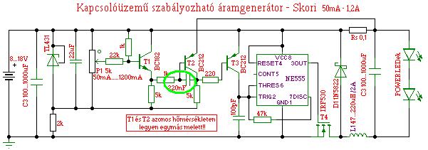 skori lapján találtam egy áramgenerátort, amit már majdnem befejeztem, és kérdezném hogy a bekarikázott 220nF kondinak mennyire számít az értéke? pont ilyen nincs itthon, mekkora értékhatáron belül helyettesíthetem másikkal?