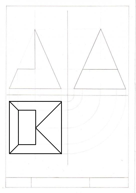 Szerintem így jó a rajz ahogy van, a négyzet jó, a két csonkolt sarok is és a háromszög is. Én legalábbis felülről ezt "látom" de nagyon rég volt már rajzoktatás. De még a mérnököknek számtan milyen rég