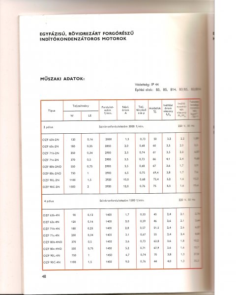 adatlapom nincs, ilyen motorom van. -áramralés indítás in=33A üzemi áram 10A indító kondi 100-120uF. -Én átalakítottam feszültség relés indításra, és kapott egy 16µF -os üzemi kondit, igy 2-3 A-val csökkent az üzemi áramfelvétel, -Kapott egy motorvédőt is! -Belinkeltem egy indító relét, a forumból. -Az új relén, fel van van tüntetve In=33A -nagyon jó betonkeverőre, fűrészgépre, kompresszorra. -nagyobb az indító nyomatéka, mint egy mai üzemi kondis 1500w-os 50Uf-os kondival szerlet új motornak. -SAJNOS NEM TALÁLTAM ! a mai gyártású motorok között ilyen nagynyomatékú motort ! Nálam kompresszort hajt!