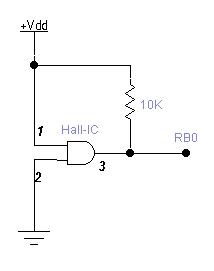 Az SMD Hall IC-t könnyű beépíteni, hiszen működne úgy is, ha a fotótranzisztor helyére kötnéd közvetlenül. Készitettem egy egyszerű beépítési kapcsolási rajzot hozzá, ezzel meg tudod oldani. (1, láb +5V, 2, láb GND, 3. láb 10k-n +5V és RB0-ra.) Szia.