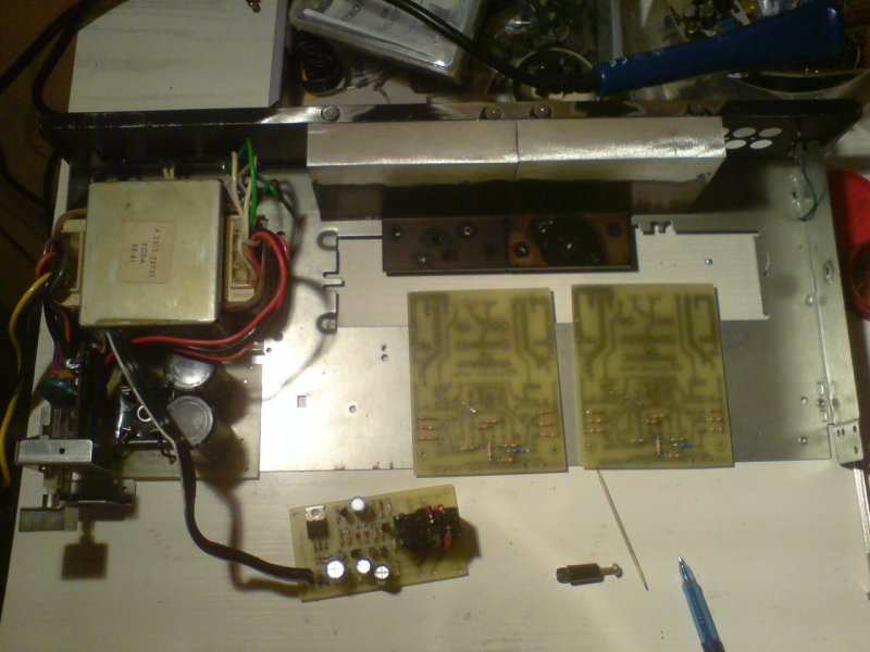 Volt egy kinyiffant ,Fisher erősítöm , egy régebbi cserebere folytán került hozzám ,egy sony kíséretében. Az egyik csatornáját felélesztettem , de a hangja sem tetszett , arról nem is beszélve ,hogy sok helyen olyan barbár módon szereltek bele ,hogy már nem javítható. (szétszedett tolópotik ,meg ilyesmi). Úgy döntöttem , hogy átépítem , és B5 lesz mert már régóta szemezgetek vele. A tápom +-41 Volt lett . Az eredeti kapcsolás ,és nyák szerint dolgozom. Esetleg ha dupla tápom lett volna akkor lehet ,hogy az Alkotós verzió készül. A védelem is elkészült , itt az Alkotó féle tervet dolgoztam át. Jól működik. DC-re is könnyű letesztelni , egy kis darab vezeték segítségével. A két bemeneti 1N4007 diódáról , a kimenetre lehet vinni egy kis DC-t.Leold ,és kis idő múlva ujra vissza. Az a fő gondom , hogy az eredeti rajzon nem szerepel ,sem pozíció szám , érték. Van valakinek olyan beültetési rajza ,amin az szerepelnek az értékek?Az eredeti nyákhoz kell. Nem szeretnék füstgépet csinálni, arra van külön topik. Ígyis majdnem odahegesztettem magamat az asztalhoz, a feltöltött tápkondikkal... (egyébként ti mivel szoktátok kisütni , nehogy odavágjon?) Vagy esetleg egy nagyfelbontású panelfotó is megfelelne ,amin jól látszanak a színkódok.