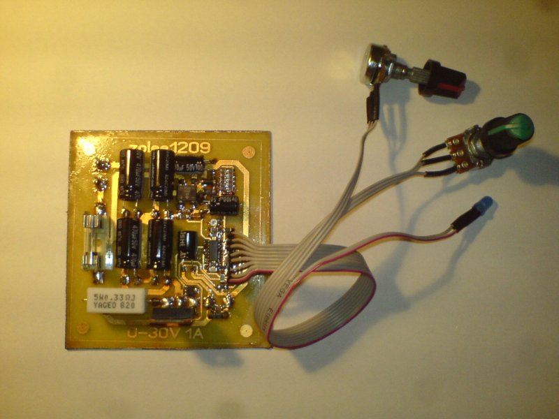 Elég sokáig offoltam az oldalon, gondoltam mutatok valamit. Régóta szükségem volt egy egyszerű tápegységre, apróbb áramkörök élesztéséhez. Mivel kollégiumban lakom, számomra fontos szempont volt, hogy kicsi legyen a készülék. Így elkészült ez a tesztpéldány. 0-30V-ig szabályozható, 1A-es maximális kimeneti áram, mely szintén változtatható. A panel 76,5x84mm-es. Kipróbálni még nem tudtam trafó és hűtőborda híján, az ugyanis otthon maradt... Természetesen a kész, dobozolt áramkör(ök)ről is teszek fel képet! :yes: Remélem ezeknél jobb minőségűt!