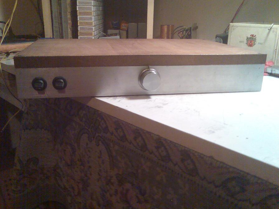 Befúrtam-reszeltem ma délután a hangszórócsatlakozókat, hálózati aljzatot, biztosítékokat, bemeneteket, hangerő/balansz potit és két kapcsolót (SRPP-zés megint elmaradt, azt hiszem akkor kerül csak elő, ha működik már valami ezen a dobozon. )