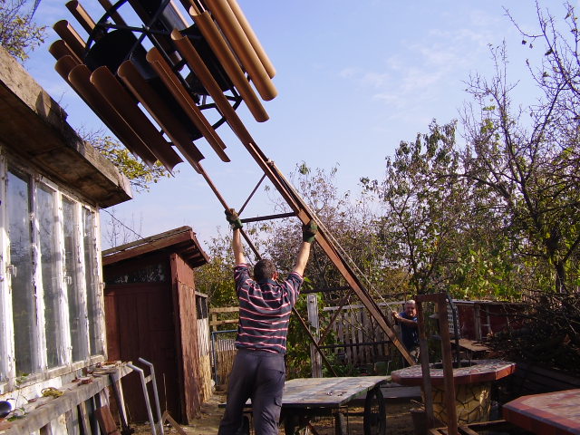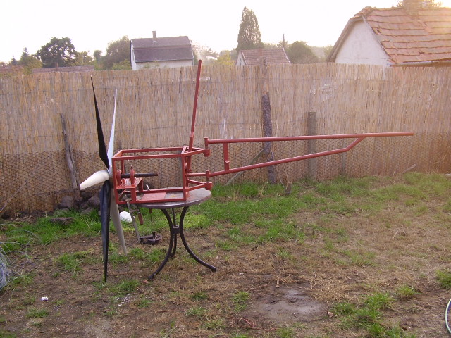 Te ez a allo tengelyes olyan jol nez ki, hogy kedvet kaptam az epitesehez. Nekem csak kisebb lehetosegeim vannak a hely hiany miatt. Hozza fogom epiteni a magyar talalmany szeltereloit is, ha mertem teljesitmenyt. Meglatjuk kicsiben mennyivel no a hatasfoka a terelok hatasara. Biztos vagyok benne, hogy lenyegesen jobb lesz, mert a szelirannyal szembe mozgo lapatok nem fekezik. Ezzel talan kiprobalhatom a szivattyu motorokat.