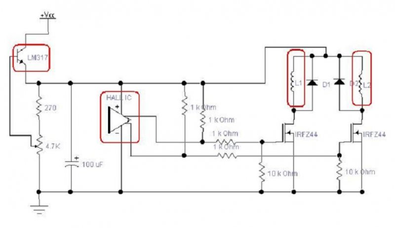 Az újabb Hall IC már 4 lábú. Ezek két kimenettel rendelkeznek, és ide vannak kötve a tekercsvégek is közvetlenül. Egy PC venti túrbózására alkalmazható Hall vezélésű FET-es kapcsolást feltöltök, erröl az LM317 elhagyható.