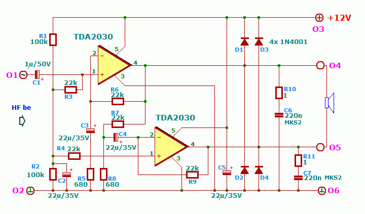 Még hozzátenném azt hogy a mellékelt kapcsolást megcsináltam és teljesen meg vagyok elégedve a hangjával, csak egy bizonyos hangerő után nagyon el kezd torzítani, még az lenne a kérdésem hogy ha hídba kötök 2-t akkor várhatok-e 2× olyan teljesítményt tőlük?