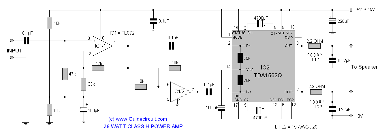 12V-ról 36Watt minőségi végfok ebből 2db. remek hangerőt biztosít és CLASS H "Hi-Fi" minőségben és természetesen jobb lesz ha REMIX vagy ERO esetleg NICHICON kondikat használunk.