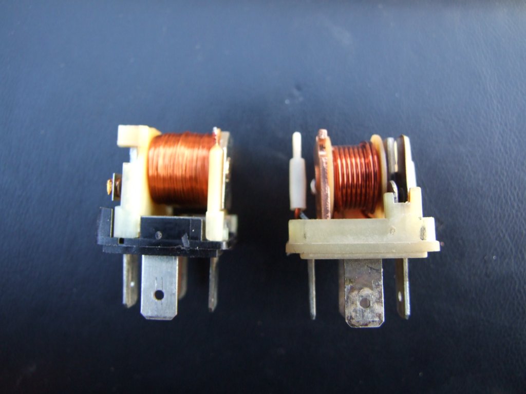 Valószín csak járó motornál- töltés esetén-van világítás.Ezért van a vékonyabb tekercs.A vastagabb a rajta átfolyó világítás árama okozta mágneseségel segít jobb érintkezést biztosítani az érintkezőkön.