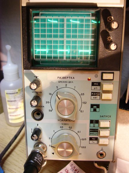 Akkor leírom a mai méréseimet. Elkezdtem méricskélni, és már vagy harmadszor fordult elő, hogy egyszer csak megsült 2 fet. mindig a távolabbi, tehát amelyik a diódákhoz közelebb van. Nem mértem úgy, hogy ki vezetékelem, hogy a gate jele ne a nyákon menjen. Majd valamikor Viszont jobban érdekelt, hogy mi az a rettenetesen rossz hatásfok! Elkezdtem mahinálni a visszacsatoló ágat, hogy jobb legyen, de nem akart jó lenni. Ezért betettem egy 4.7K potit az optocsatoló helyére, és én kézzel állítottam a kitöltést, azaz a kimeneti feszt. Csináltam egy pár teljesítmény mérést. Az első mérés sorozat lényege, hogy ha változtatom a kitöltést, akkor hogy változik a hatásfok. U be I be P be U ki I ki P ki hatásfok 12V 32,5A 390W 106V 3,56A 378W 97% 12V 29,8A 358W 95,7V 3,48A 333W 93% 12V 28,1A 338W 85,5V 3,27A 279,6W 82% 12V 26A 312W 73,2V 3A 219,6W 70% 12V 24,3A 292W 63,7V 2,78A 177W 60% 12V 21,1A 254W 49,2V 2,41A 118,5W 46% Tehát jól látszik, hogy a hatásfokom is csökken ha csökkentem a kitöltést. Azért nem fojtattam a kitöltés csökkentést, mert a fetek viszont minél inkább csökkentettem a kitöltést, annál jobban fűtöttek. Féltem, ha letekerem, akkor megölöm őket. Kézzel meg se lehetett fogni a hűtőbordát! Aztán föltekertem a kitöltést, és megnéztem, hogy mit tud a táp. Rátettem az 110V 500W-os izzómat, és odatekertem neki a kitöltést. Elég jó volt! U be I be P be U ki I ki P ki hatásfok 11,8V 44,66A 527W 98,6V 5,18A 510W 96.7% Ezt a terhelést kapta vagy 15 percen keresztül, és a trafó szerintem nem melegedett, a fetek azért már jócskán. Szerintem az IRF3205 -öknek ekörül volt a végük. ha akarnék még nagyobb teljesítményt, akkor szerintem a trafó bírná, csak kéne még egy pár fet bele. A 2 mérés azért mutatja, hogy a tápom 510W-nál már egy kicsit le esett 106V-ról 98,6V-ra, ez nem is olyan sok. A betápom is esett 0.2V-ot, ez is meg lekk, hogy látszódjon a kimeneti feszültségen valamelyest, ha nem is nagyon. Rakok képeket is: A szkópról úgy csináltam a képet, hogy látszódjon, hogy melyik kapcsolója hol áll. A mérőfejet is 1:1 állásba tettem.