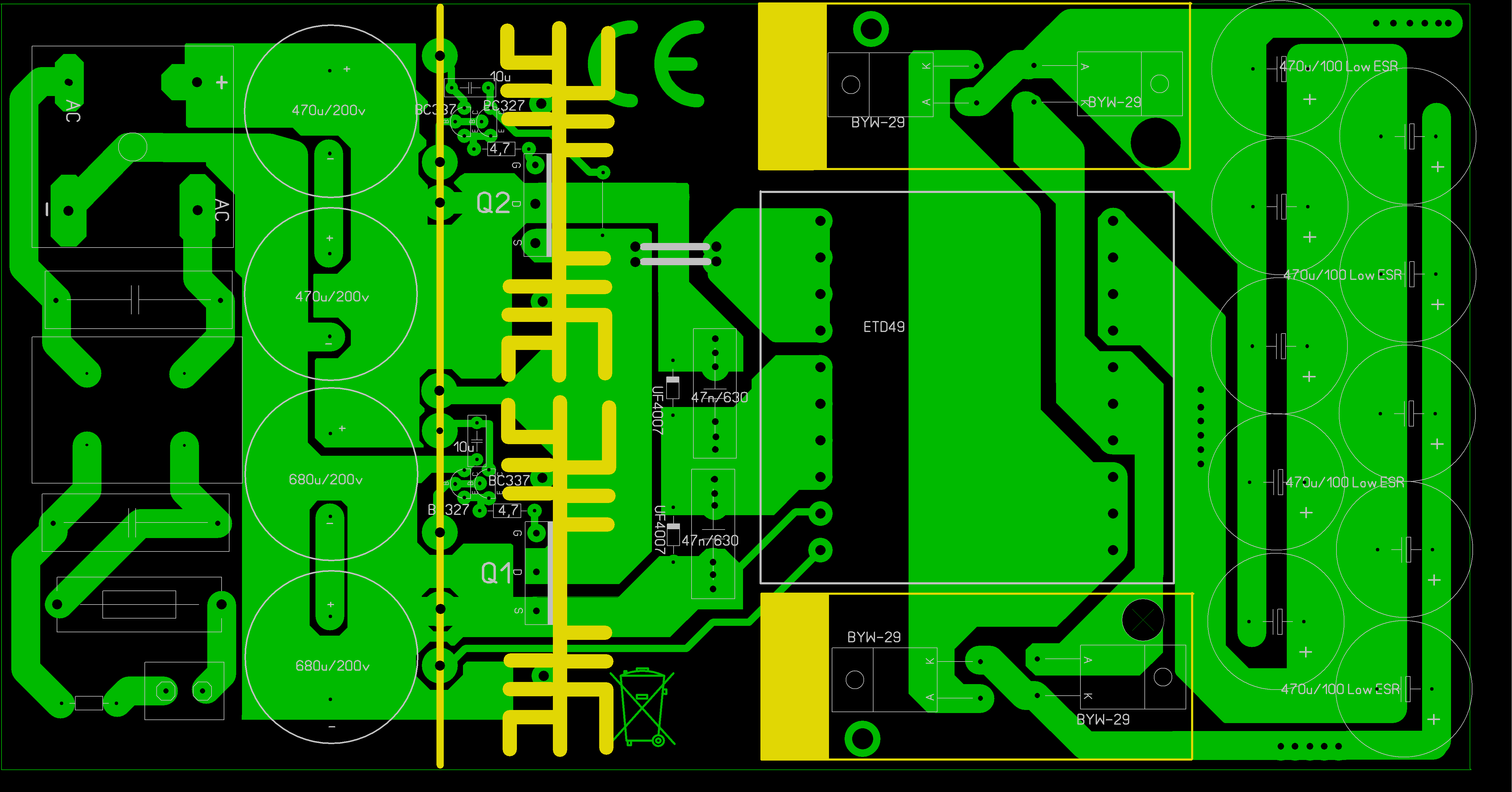 Ha még nem olvastad el a Cimó-féle tápot, akkor ajánlom figyelmedbe. Egy ilyet használok ebben a 2x200W-os erősítőben és tökéletes.