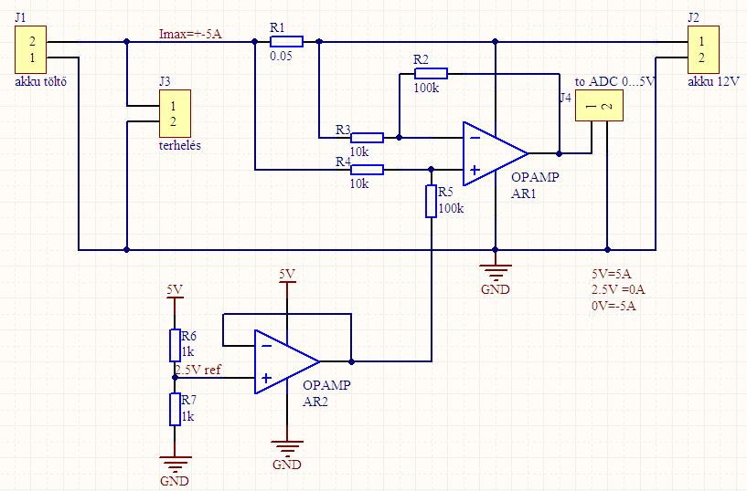 A maxim-nál találtam cél IC-t a feladatra. Használt már valaki ilyet? Választható erősítés 50x, 100x), referencia kimenet 2,5V, 0-2.5V negatív áram, 2,5-5V pozitív áram. ITT a MAX4070 leírása. Ideálisnak tűnik a feladatra. ITT egy kis cikk a témában, a Figure 6. az érdekes. A másik út, mivel nincs elég időm beszerezni az IC-t, megvalósítás differencia erősítővel, de ez a sok ellenállás miatt pontatlanabb lehet. Szerintetek működhet így ez a kapcsolás? Gondolok itt a kb.12V közös jelre a bemeneteken.