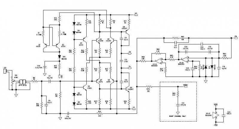 Akárhogy is van összerakva,ha egyenfeszt mérsz a kimeneten akkor az ic nek annyi.Ezek nagyon érzékeny ic k,az is elég neki ha bakapcsoláskor már a kimeneten vannak a reprók és pukkannak.Kiüti a végtranyókat.Nekem már ilyen is történt.Mivel tudjuk az STK t már nemgyártja a sanyo hanem csak utángyártott másolatokat lehet kapni és ezeknek a belsejükben sokszor egy teljesen leegyszerüsitett kapcsolást tanálunk gyengébb alkatrészekkel.Az eredeti darabok amiket még itt-ott belehet szerezni azok árai a csillagos egeket verik.Ennek ellenére azért ha jól van összerakva minden a nyákon,azért mennie kellene.De mindenképp cserélned kell az ic t.Ha egy stk kimenetére egyenfesz kerül az 99 százalékban halált jelent az ic részéröl.Ha + fesz van akkor átütött benne aTR9 nek jelölt npn tranyó,ha megnézed a belsö kapcsolását az adatlapon akkor rátudsz mérni zárlatkeresövel 13. lábat a 12 essel aztán pedig a 11. es lábat a 12. essel kel mérni,kolektor emitor biztos fütyülni fog.