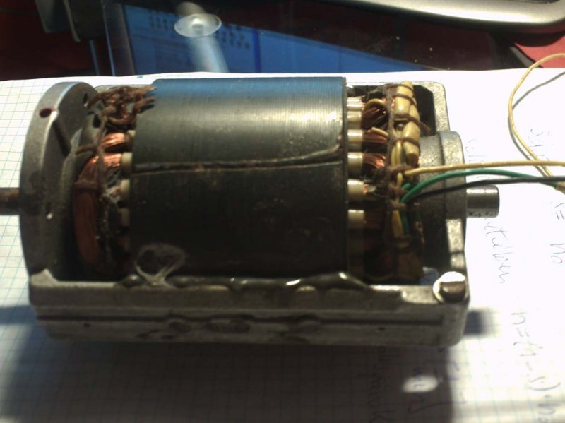 A forgórész lúgban ázik (rezet rakok vissza), az állórészt pedig úgy kéne áttekercselni, hogy kisebb legyen a fogyasztása (a teljesítménye is bőven elegendő volt ezért ez is kisebb lehet).