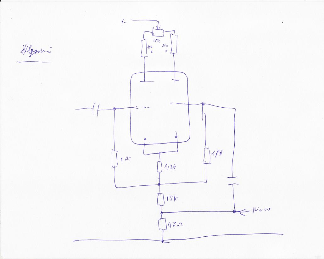 -Hát én nem tudok szabadulni a gondolattól, hogy az a 15 K ami tévedésből az anódhoz lett rajzolva (oda nyilván 100 K kell), az kell a katódkomplexumba valami formában. ...mert keveslem az 1,2 K-t a földelt rácsos oldal meghajtásához..