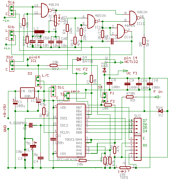 Itt egy új frekvencia, kapacitás, induktivitás mérő (Quartz teszter) kapcsolási rajz. Nemsokára én is nekiállok, csak megszerzem az alkatréseket hozzá. Igaz kicsit drága, de megéri ha elkészül. Csatlom a fájlokat.