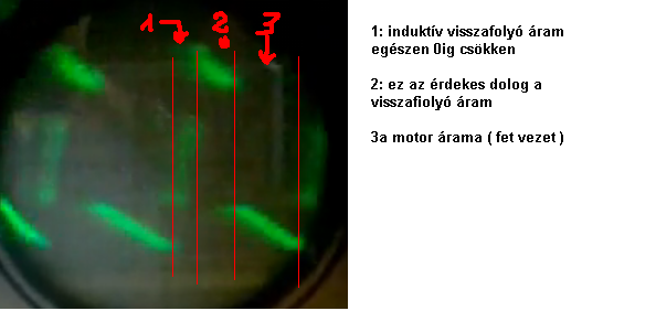 látszik is a lényeg a fet vezetési szakasza alatti áramnövekedés, meg az induktív visszafutás fet kikapcsolás alatt, meg még egy marhaérdekes dolog: miután a forgórész induktív árama elfogyott, van egy kis visszafolyó áram az akkuba, a fetek diódáin keresztül, ez a motor forgórészének generátoros üzeme, de mitől lesz nagyobb a belső indukált feszültség, mint ami elötte rá volt kapcsolva? A fordulatszám nem nőhetett meg. Egyenlőre nem tudom megmagyarázni. Na mindegy ez nem lényeg A lényeg az áram hullámossága, az induktív rész árama sokkal gyorsabban csökken, mint azt gondoltam, ezért komparál össze-vissza nagyobb frekivel mint a TL. Frekvenciaüttetéshez hasonló jelenség, kapcsolási idő és frekvencia bizonytalanná válik. Szóval kicsit át kell tervezni a dolgokat, csak a TL nek nincs szinkronizáló kimenete, így egy pár alkatrésszel több cucc kell. Mostmár biztos hogy szinkronizálni kell a TL hez az áramkomparálást!