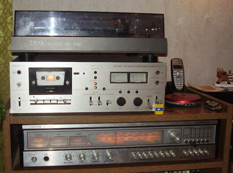 Nekem egy 1982 es HIFI m van Videoton rádió, Orion kazettás magnó, Taya lemezjátszó, 2 db 4 utas 100W os hangszóró. A magnóhoz csináltunk egy 3.5 ös jack csatlakozót, és a video/DVD lejátszóval össze van kötve.