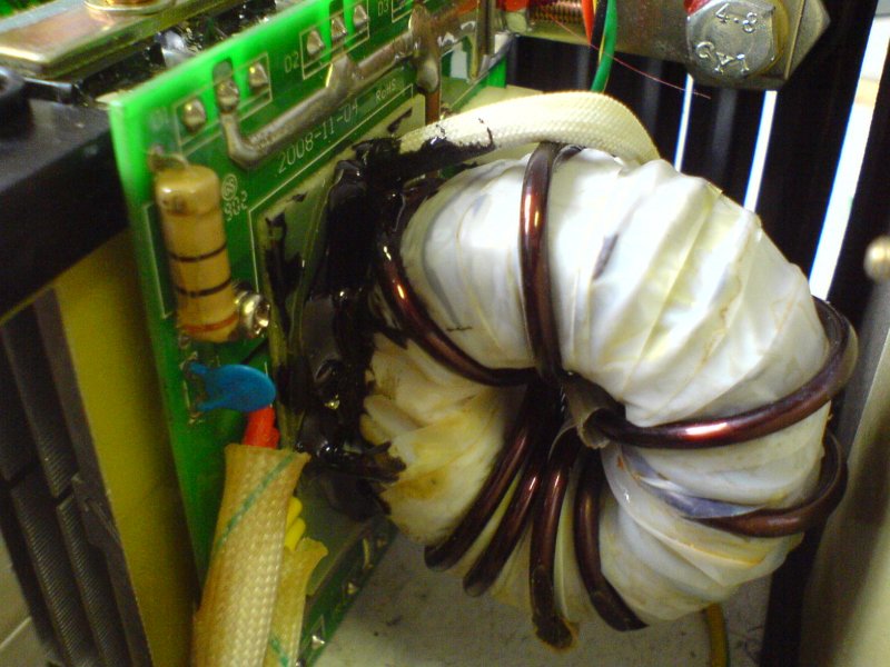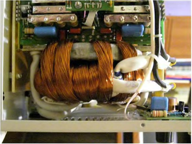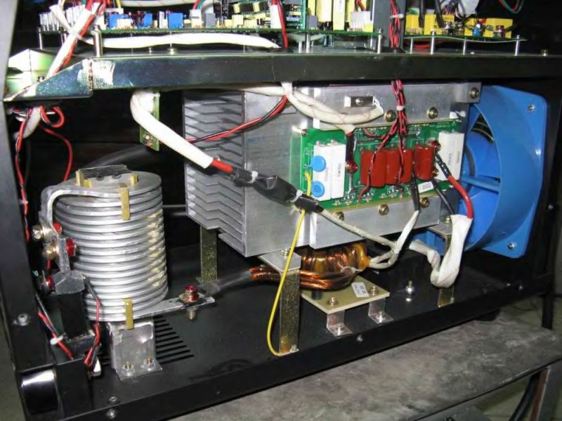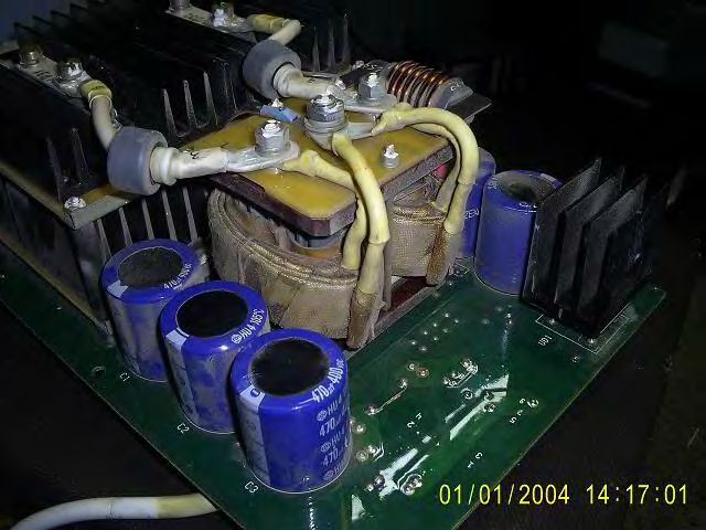A gépet aggregátorról üzemeltették, nem sokáig húzta szegényem. De szerencsére az igbt-k kibírták a strapát. A 2 db 560µF kondi és a graetz +,- zárlatos lett.